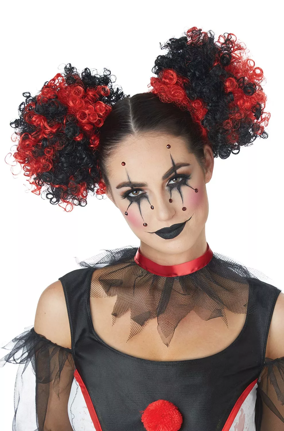 Clown puffs are a great way to accessorize your already fabulous clown costume. If you don’t like full wigs, or the traditional clown afro just isn’t your thing, these are a great alternative. These puffs are a dramatic red/black.