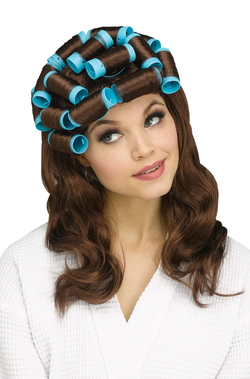 You’ll look like a hilarious housewife with this brown Housewife Curler Wig. This long brunette wig features blue curlers so you’ll look like you’ve just got caught in the middle of primping for the day. Grab a robe and some slippers to complete this funny look.