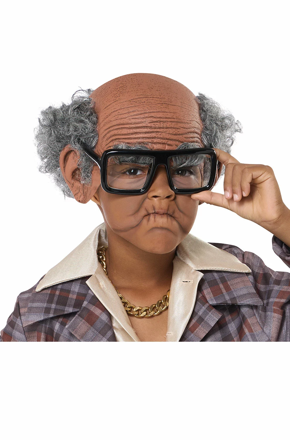 Transform your child into a wise and elderly figure with the Old Cue Ball Child Kit in Brown! This costume kit includes a comfortable brown bald cap that fits most children, completing their look and giving them an authentic appearance.