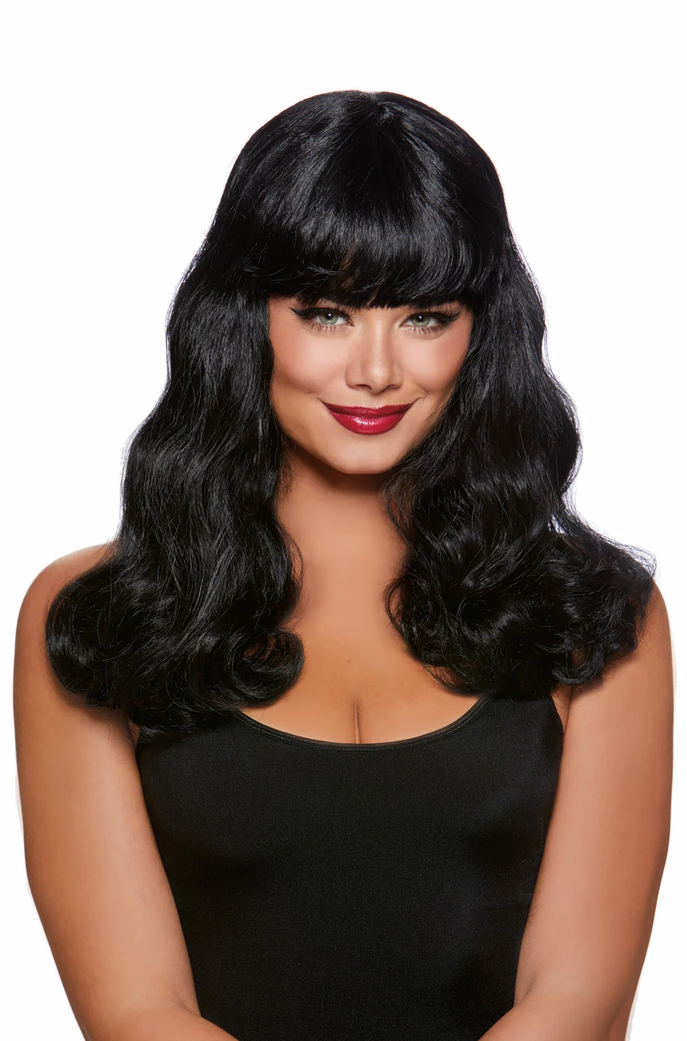 You’ll look just like a beautiful blast from the past in this Pin Up Wig. Perfect for if you’re trying to cultivate that 1950’s ‘pin-up girl look’, this wig features long black wavy hair and bangs that will have you looking just like miss Bettie Page!